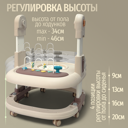 4.Ходунки — безопасная конструкция с маневренными колесами для первых шагов.