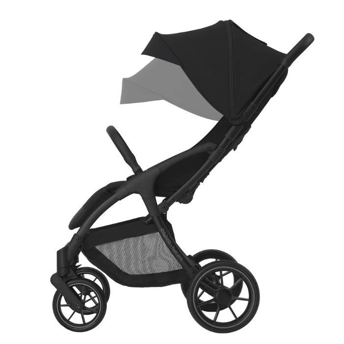 Капор имеет дополнительную секцию, увеличивается и делает пространство малыша более укрытым от солнца и в прохладное время года защищает от осадков.