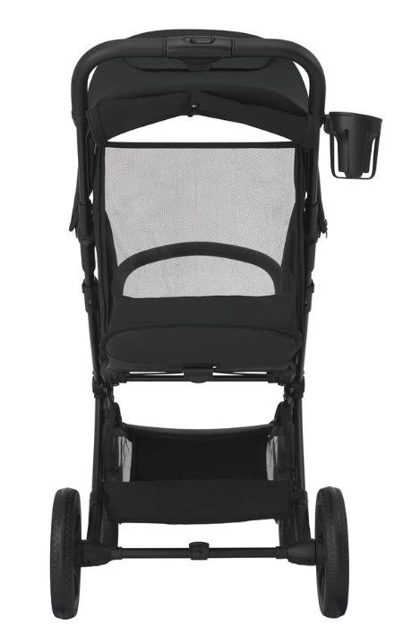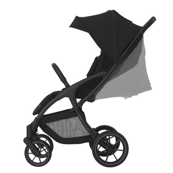 Cпинка коляски регулируется кнопкой-рычаг, имеет 3 положения, до максимально горизонтального.
