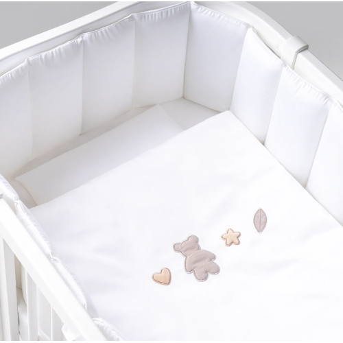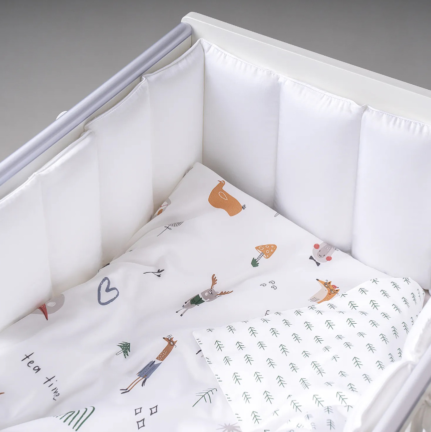 Для дополнительного удобства бортики в кроватку сделаны из отдельных частей со съемным чехлом. Теперь вы легко можете стирать только внешнюю часть бортиков, не затрагивая внутреннее наполнение. Наполнитель Hollcon — экологически чистый, гипоаллергенный и легкий материал. Прекрасно сохраняет форму и надежно защищает малыша.