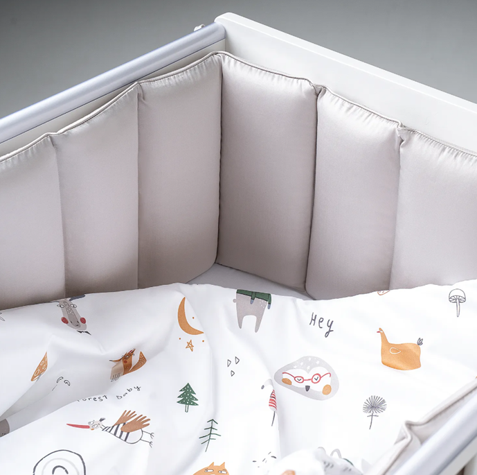 Для дополнительного удобства бортики в кроватку сделаны из отдельных частей со съемным чехлом. Теперь вы легко можете стирать только внешнюю часть бортиков, не затрагивая внутреннее наполнение. Наполнитель Hollcon — экологически чистый, гипоаллергенный и легкий материал. Прекрасно сохраняет форму и надежно защищает малыша.
